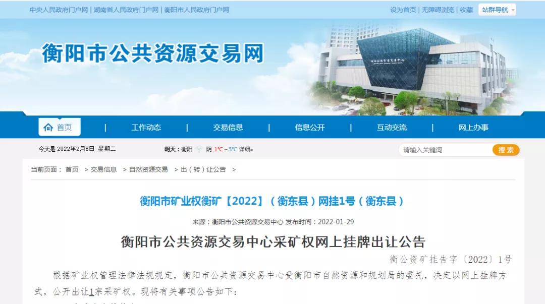 本次采礦權掛牌出讓僅在互聯網上交易,即通過衡陽市公共資源交易網掛牌出讓。本次采礦權網上掛牌出讓僅限于網上競價,按照價高者得且不低于起始價的原則確定竟得人。