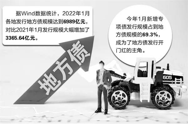 據Wind數據統計,2022年1月各地發行地方政府債券規模約6989億元,較去年同期顯著增長,且推動1月地方債放量發行的“主力”是新增地方政府專項債券,實現了發行工作“開門紅”。在多位接受證券時報記者采訪的專家看來,有望在一季度持續發力的新增專項債還將有力推動基建投資“開門穩”。