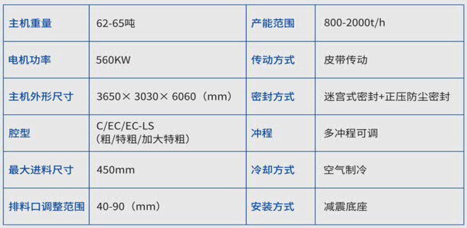 設備高強度結構匹配大負荷應用場景,實現高轉速,高破碎比,優化成品級配,提升產量。