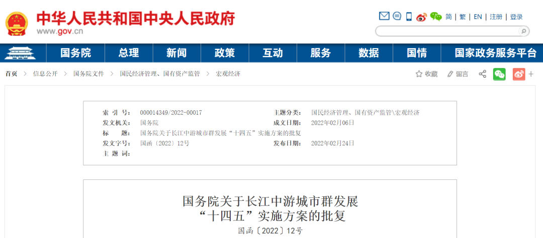 國務院網站還發布了《國務院關于長江中游城市群發展“十四五”實施方案的批復》,這也是繼京津冀、長三角、大灣區、成渝之后的“第五大城市群”。