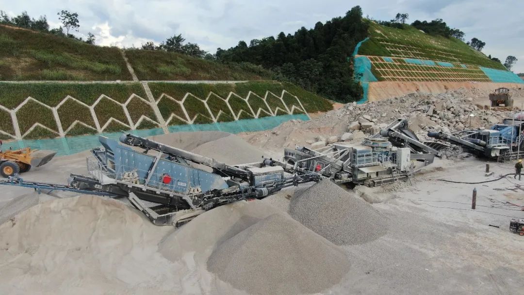 2021年9月,韶瑞重工全新2套PowerTrac系列移動式顎破+移動式圓錐+移動式篩分機來到現(xiàn)場,共計6臺設(shè)備投入項目使用,為高速公路建設(shè)生產(chǎn)輸送高質(zhì)量精品骨料。