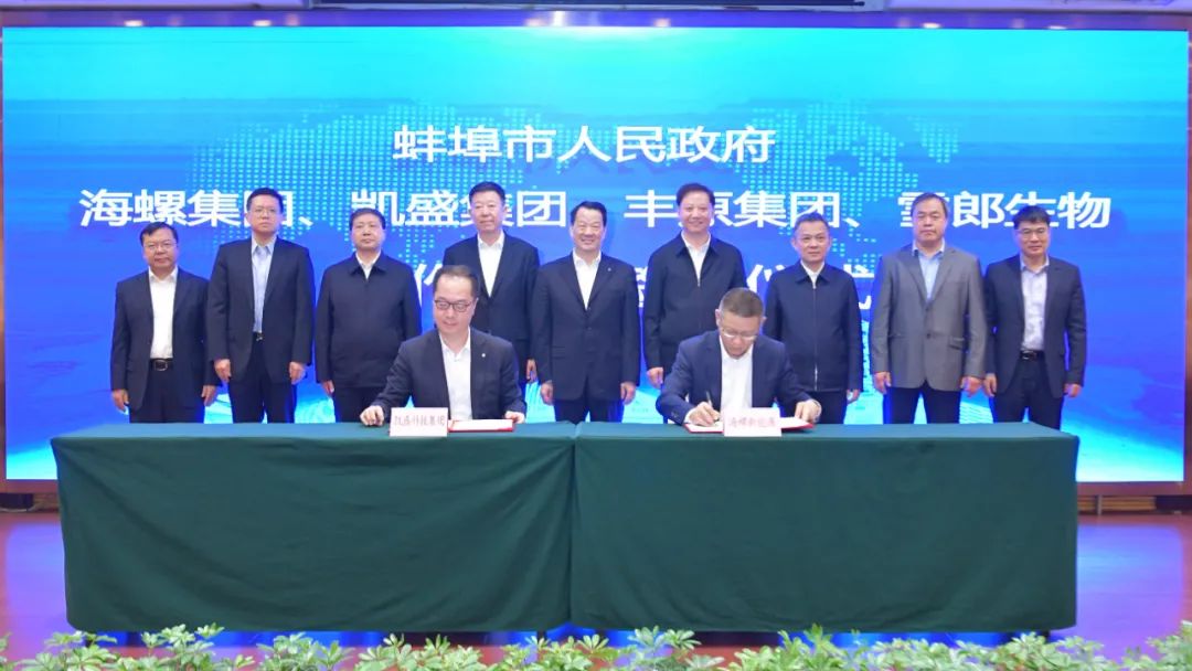 3月16日上午,安徽省蚌埠市人民政府與海螺集團、凱盛集團、豐原集團、雪郎生物合作項目簽約儀式舉行。市委書記黃曉武,中國工程院院士、中國建材集團總工程師、國家玻璃新材料創(chuàng)新中心理事長、中建材玻璃新材料研究總院院長彭壽,海螺集團黨委書記、董事長王誠在簽約儀式上致辭;市長操龍燦主持儀式;市政協(xié)主席楊森,市委常委、常務(wù)副市長葛銳,副市長潘君齊,安徽豐原集團、雪郎生物科技股份有限公司負責(zé)人出席。