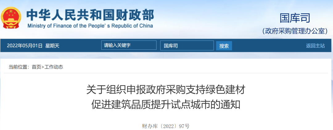 日前,財政部、住建部等國家四部委聯合發布《關于組織申報政府采購支持綠色建材促進建筑品質提升試點城市的通知》(以下簡稱《通知》),《通知》中明確,決定在南京、杭州、紹興、湖州、青島、佛山6個試點城市的基礎上,進一步擴大政府采購支持綠色建材促進建筑品質提升試點范圍。各省、自治區、直轄市及新疆生產建設兵團所轄副省級省會城市、計劃單列市、地級市(行政區)可以組織申報。