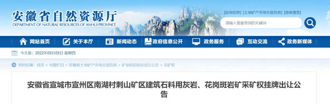 本公告在自然資源部門戶網站、宣城市宣州區自然資源和規劃局門戶網站、礦業權交易大廳同時發布。