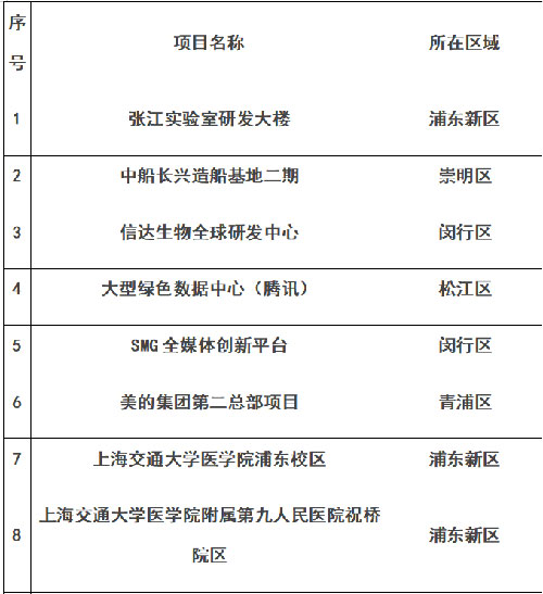上海市重大工程建筑工地復(fù)工復(fù)產(chǎn)“白名單”