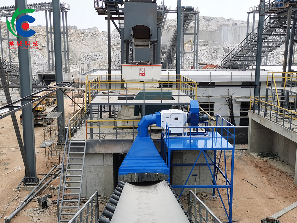 2021年10月,承誠科技與該公司簽訂生產(chǎn)線,希望打造出真正的全國砂石清潔生產(chǎn)的樣板線,在行業(yè)規(guī)律發(fā)展作業(yè)方面,真正踐行砂石人應(yīng)做的責(zé)任和擔(dān)當(dāng)。今年1月,承誠科技相關(guān)技術(shù)系統(tǒng)開始進場施工建設(shè),3月竣工。目前整條生產(chǎn)線運轉(zhuǎn)除塵效果良好,得到了業(yè)主方的高度認可。