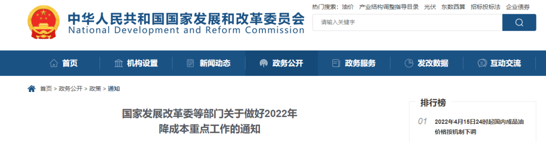 國家發展改革委等部門關于做好2022年降成本重點工作的通知