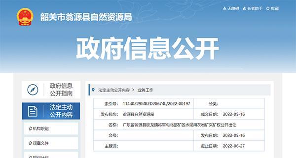 5月16日,韶關市翁源縣自然資源局發布廣東省翁源縣鐵龍鎮將軍屯北部礦區水泥用灰巖礦采礦權公開出讓公告,建筑用石灰巖礦石資源儲量超5000萬噸,出讓21年,起始價2.15億元。