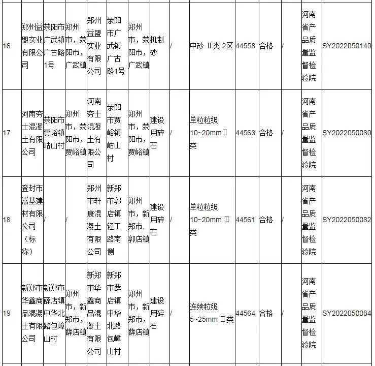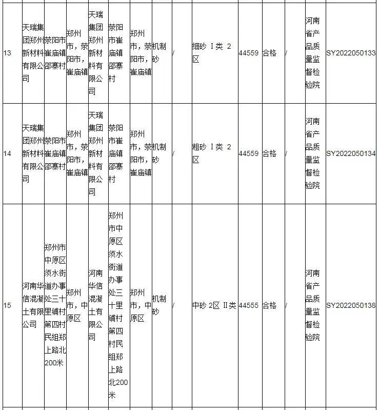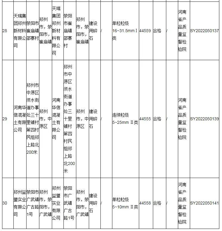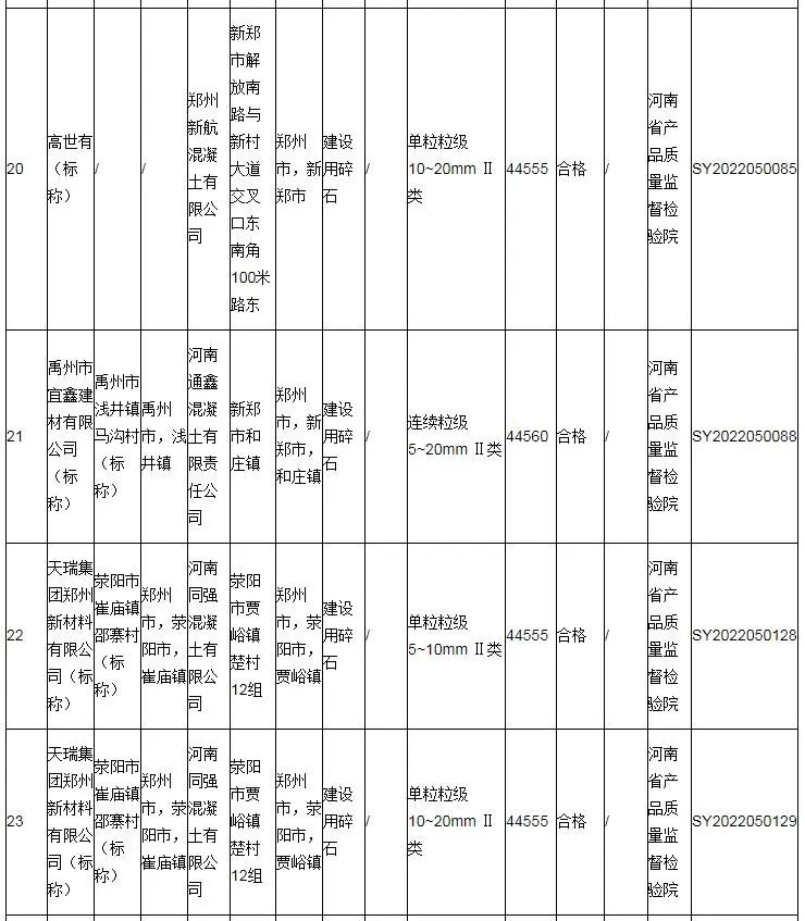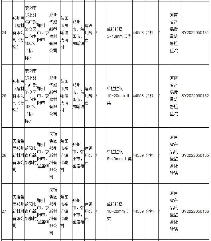 5月18日,鄭州市市場監督管理局網站發布2021年第一批產品質量專項監督抽查結果。本次抽查共抽取了鄭州市轄區15家企業的30批次機制砂石產品。經檢驗,全部符合標準要求,批次合格率100%。