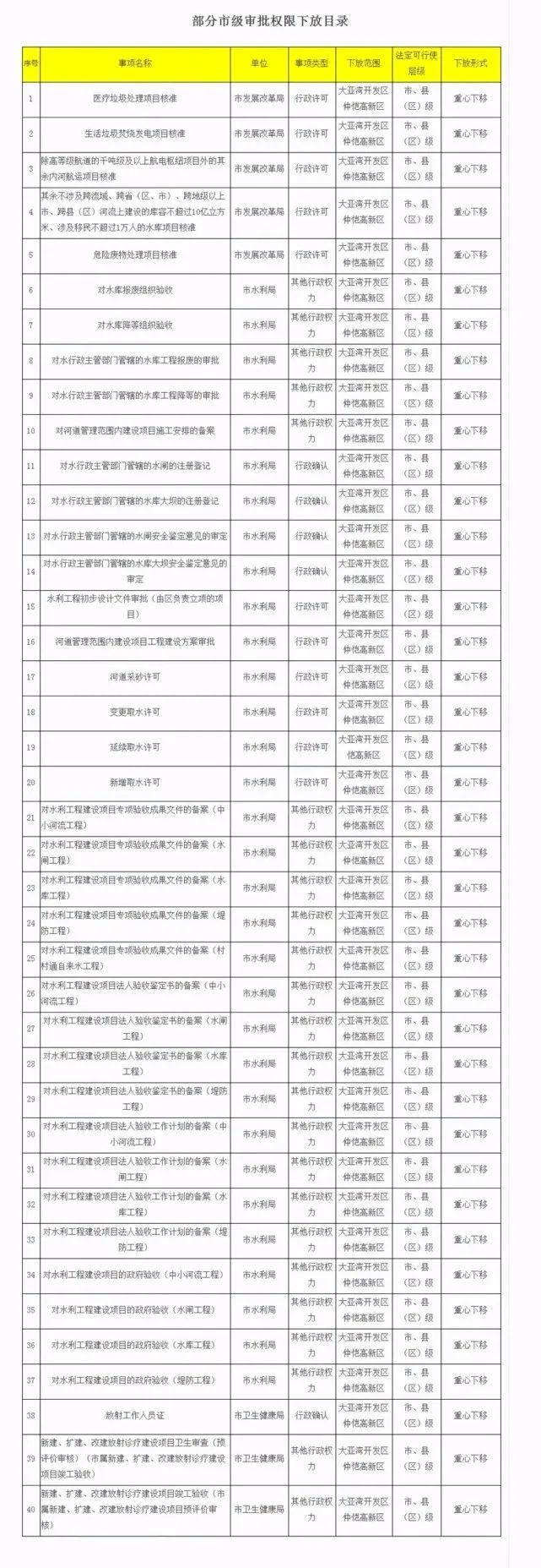 采砂許可、放射工作人員證等40項,分別涉及市發展和改革局、市水利局、市衛生健康局三個市直部門。