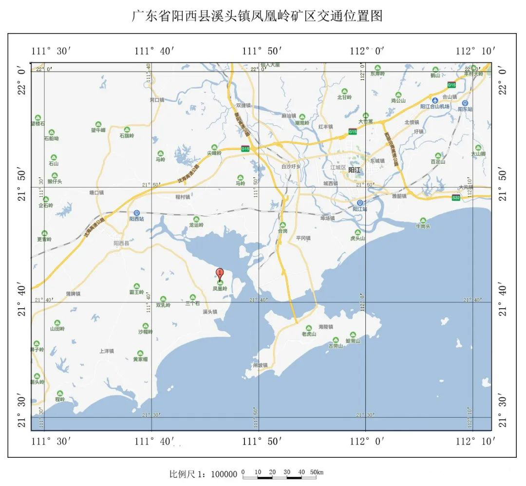 該礦區位于陽江市陽西縣縣城約108°方向,直距約17公里處;礦區面積1.164平方公里,開采標高261米至0米;開采礦種建筑用片麻巖,資源儲量9171.5萬立方米,其中控制資源量6315.6萬立方米,推斷資源量為2855.9萬立方米;設計生產規模1120萬立方米/年,出讓年限9年,出讓起始價10億元。