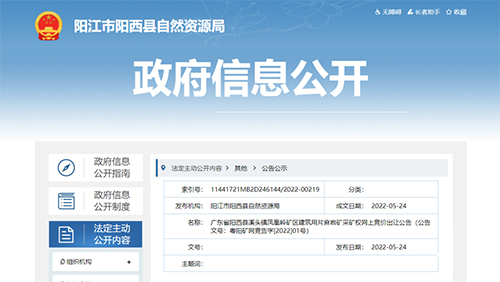 該礦權申請競買時間6月22日8時30分至7月4日16時,掛牌起止時間6月22日上午8時30分至7月5日上午10時,通過陽江市土地與礦業權網上交易系統或廣東省公共資源交易平臺交易系統申請參加競買。