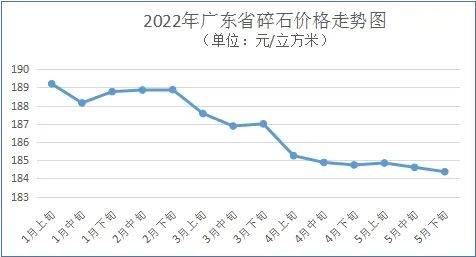 據(jù)監(jiān)測,5月下旬全省碎石平均購進(jìn)價(jià)為每立方米184元,環(huán)比微降0.13%。其中,珠三角地區(qū)碎石平均購進(jìn)價(jià)為每立方米205元,環(huán)比微降0.33%;粵東和粵北地區(qū)碎石平均購進(jìn)價(jià)分別為每立方米208元和151元,環(huán)比分別微漲0.2%和0.01%;粵西地區(qū)碎石平均購進(jìn)價(jià)為每立方米134元,環(huán)比繼續(xù)持平。所監(jiān)測的機(jī)制砂平均購進(jìn)價(jià)為每立方米154元,環(huán)比下降1.1%。