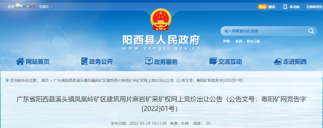 據(jù)了解,近日,廣東省陽西縣出讓資源儲量9171萬方(約24300萬噸)建筑用片麻巖