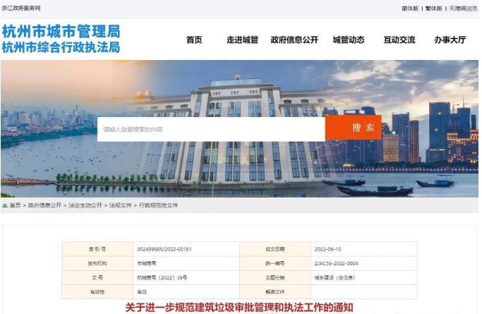 關于進一步規(guī)范建筑垃圾審批管理和執(zhí)法工作的通知杭城管局〔2022〕39號