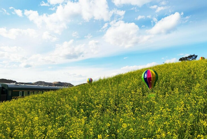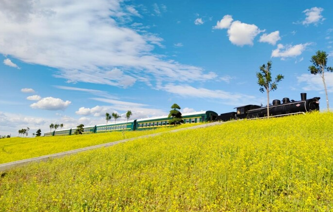 油菜花綻放的金嶺礦山傳奇景區(qū)。李樂攝