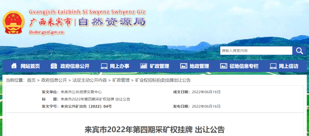 (公告文號:來賓公共礦出告〔2022〕04號)