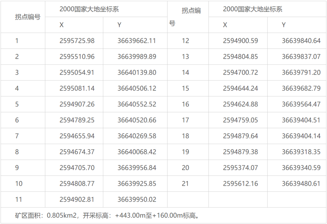 面積:0.805平方千米,拐點坐標如下(2000國家大地坐標):