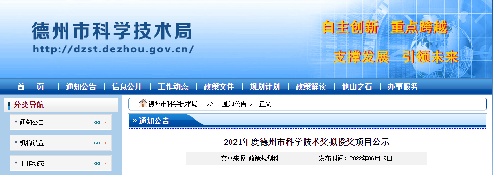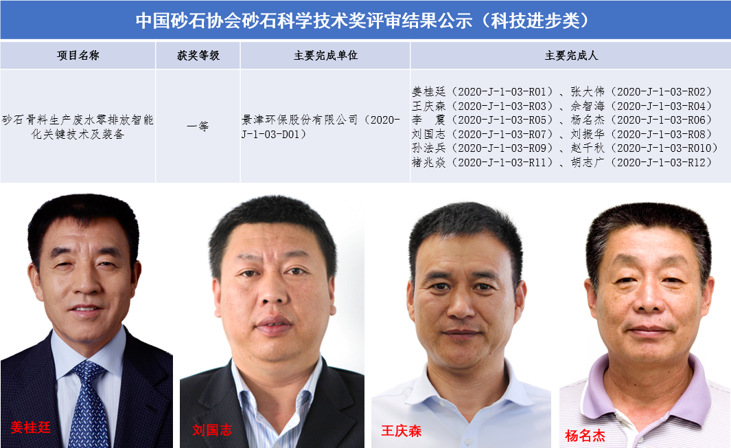 6月19日,2021年度德州市科學技術獎評審委員會評審工作已經結束根據《德州市科學技術獎勵辦法》的規定現將評審委員會通過的135項科技進步獎、8項科技合作獎在德州市科技局網站公示。中國砂石協會副會長單位——景津裝備股份有限公司項目《砂石骨料生產廢水零排放智能化關鍵技術及裝備》入選科技進步獎產業類項目德州市科技進步獎一等獎。
