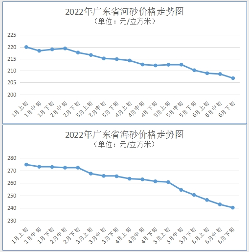 河砂均價207元/m3,廣東省河砂價格保持微降,海砂價格持續(xù)下行!
