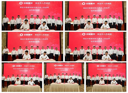 7月1日,中國建材所屬成員企業保定中聯新材料與河北省保定市阜平、易縣、順平、唐縣、曲陽、淶水、淶源七縣人民政府在保定市舉行合作框架協議集中簽約儀式。保定市市委常委、常務副市長張貴寶,新天山水泥副總裁、中聯同力(河南)黨委書記、董事長劉宗虎出席儀式并講話。保定市國資委黨委書記、主任聶會文主持簽約儀式。