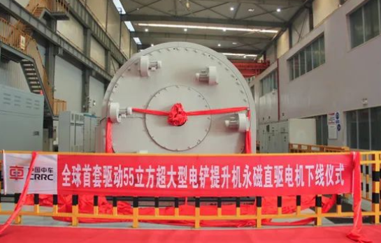 全球首套驅(qū)動(dòng)55立方超大型電鏟提升機(jī)永磁直驅(qū)電機(jī)下線