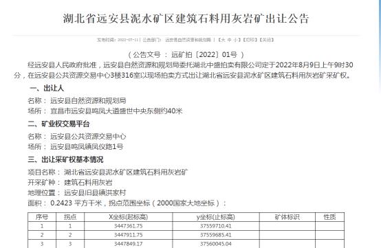 5、競得人獲得采礦許可證后,在《采礦權出讓合同》有效期內已開采完出讓資源儲量的或有效期止未開采完出讓資源儲量的,均由遠安縣自然資源和規劃局無償收回其采礦權,經核實超過出讓資源儲量部分必須按照“鄂自然資規〔2020〕1號”文件有關規定處置。該采礦權到期后是否繼續設置,由其審批發證的登記機關根據國家產業政策、礦產資源開發利用規劃及其他相關規劃和國家建設需要另行決定。