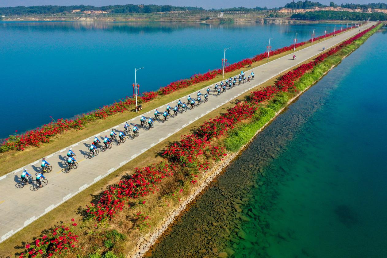 近年來,茂名市先后改造修建道路9條,形成43公里貫通礦區(qū)周邊的公路網(wǎng),解決了居民“出行難”問題,盤活了露天礦生態(tài)、觀光資源。隨著環(huán)湖公路及周邊路網(wǎng)的暢通,露天礦生態(tài)公園成為市民最愛的游憩地,全民徒步、環(huán)湖馬拉松、騎行等體育賽事活動成為常態(tài),前來進(jìn)行健身、娛樂活動的市民絡(luò)繹不絕。