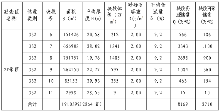 沅江市巴南湖2#采區砂礫石礦資源儲量估算表