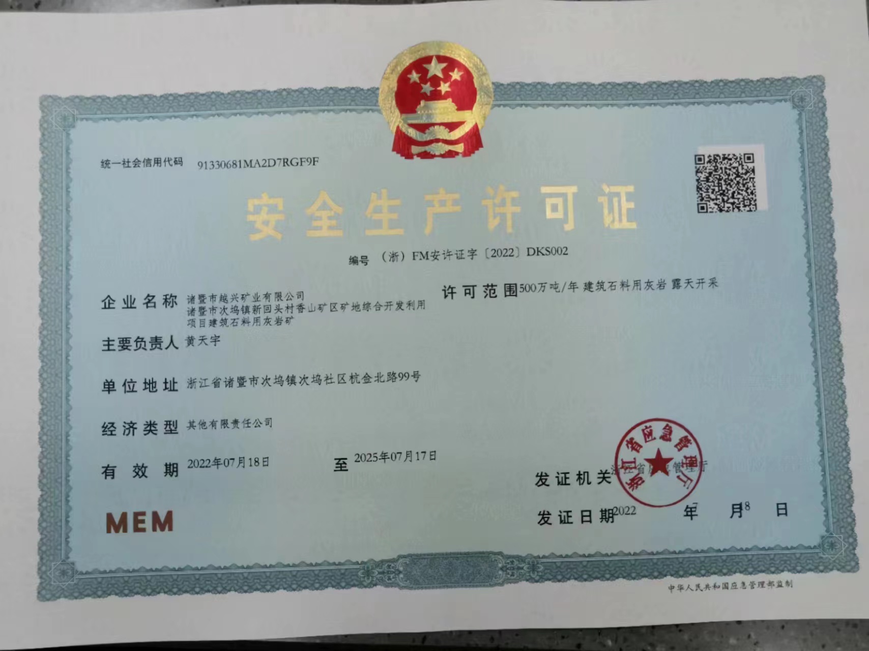 7月18日,浙江省交通集團(tuán)旗下交通資源集團(tuán)越興礦業(yè)成功取得安全生產(chǎn)許可證,標(biāo)志著公司正式進(jìn)入全面生產(chǎn)階段。