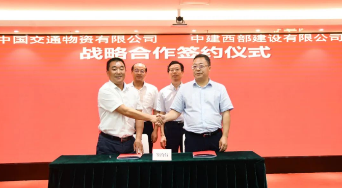 7月15日下午,中建西部建設(shè)股份有限公司與中國交通物資有限公司舉行戰(zhàn)略合作協(xié)議簽訂儀式。中交集團供應(yīng)鏈管理部總經(jīng)理、中國交通物資有限公司黨委書記、執(zhí)行董事潘衛(wèi)康,中交集團供應(yīng)鏈管理部副總經(jīng)理、中國交通物資有限公司總會計師、總法律顧問、中交西南物資有限公司董事長曾孟軍,中國交通物資有限公司總經(jīng)理助理、辦公室主任葉波,中國交通物資有限公司副總經(jīng)濟師、中交西南物資有限公司總經(jīng)理閔渝森,中建西部建設(shè)黨委書記、董事長吳志旗,黨委委員、副總經(jīng)理向衛(wèi)平出席簽約儀式。