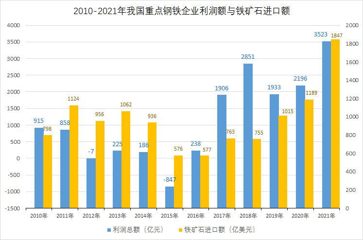 若以近10年的鐵礦石進(jìn)口均價(jià)為基礎(chǔ)來(lái)計(jì)算近2年我國(guó)鐵礦石進(jìn)口超額花費(fèi)的話,相當(dāng)于2021年我國(guó)因鐵礦石價(jià)格上漲多花費(fèi)753.67億美元,折合人民幣4785.8億元。按照我國(guó)重點(diǎn)鋼鐵企業(yè)利潤(rùn)總額3523.9億元計(jì)算,相當(dāng)于我國(guó)重點(diǎn)鋼鐵企業(yè)利潤(rùn)總額的1.35倍。2021年,我國(guó)鋼鐵企業(yè)銷售利潤(rùn)率也僅有5.08%。