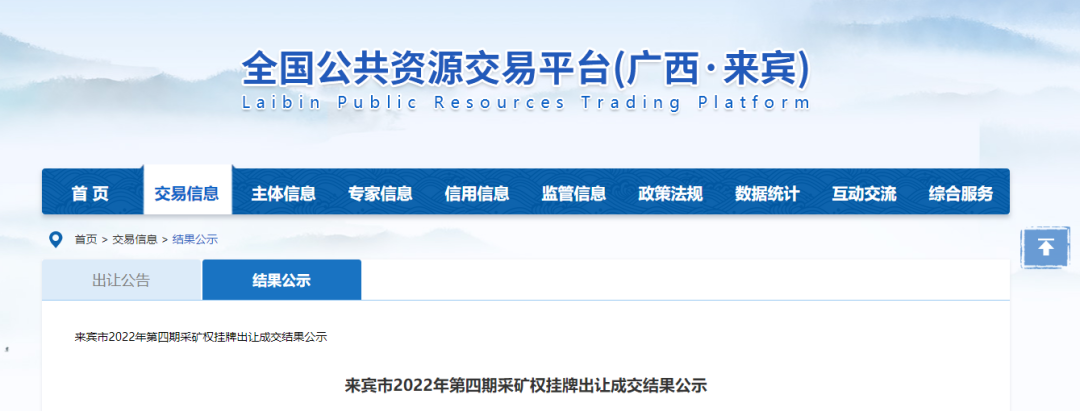來賓市2022年第四期采礦權掛牌出讓成交結果公示