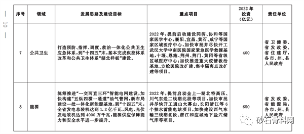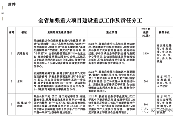 8月1日,湖北省政府發布《關于進一步加快重大項目建設擴大有效投資的若干意見》,重點圍繞交通物流、水利、流域綜合治理、數字經濟、城市基礎設施、以縣城為重要載體的城鎮化、公共衛生、能源等8個方面,今年投資總額7800億元。項目清單如下: