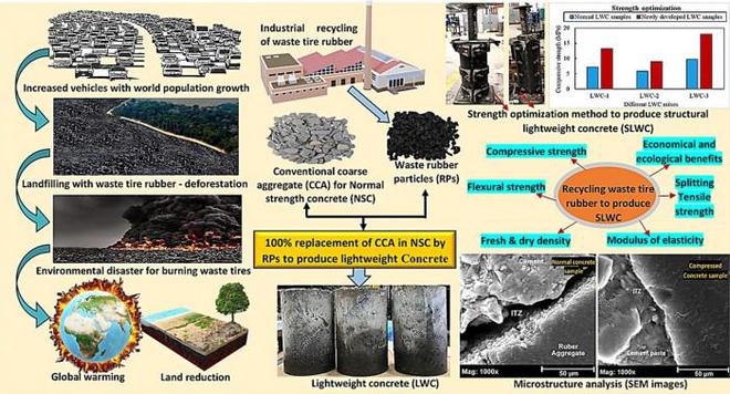 研究報告的共同作者和團隊負責人李杰教授說:“由于典型混凝土的主要部分是粗骨料,用廢舊輪胎橡膠取代所有這些骨料可以大大減少自然資源的消耗,也可以解決如何處理廢舊輪胎這一重大環(huán)境挑戰(zhàn)。”