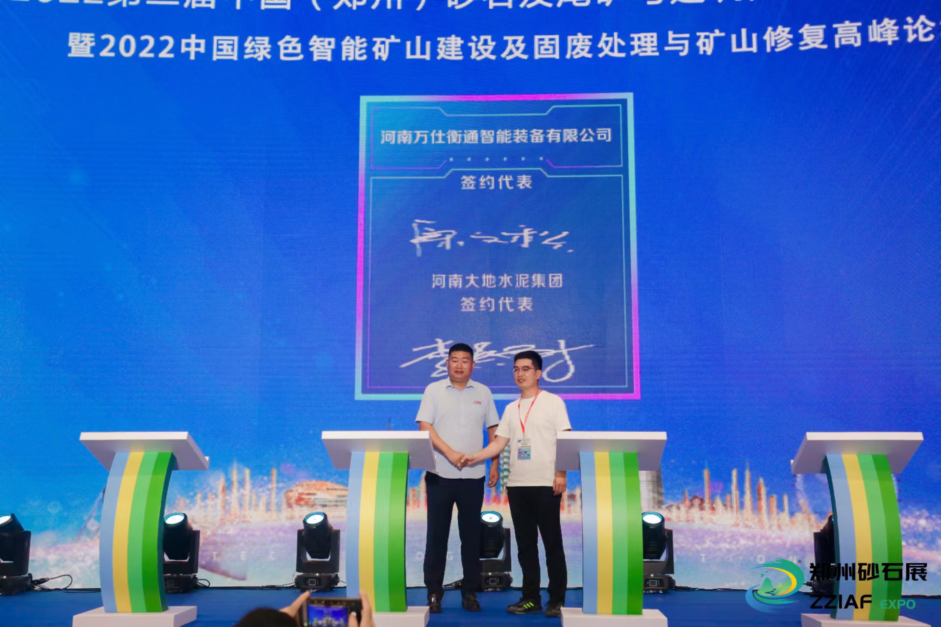 2022年8月22-24日,為期3天的2022第二屆中國(鄭州)砂石及尾礦與建筑固廢處理技術展覽會在鄭州國際會展中心舉行。河南萬仕衡通智能裝備有限公司(以下稱萬仕衡通)作為一家礦山設備設計、制造、安裝、EPCO一站式綜合服務商,連續(xù)兩年參展,再次攜明星產(chǎn)品精彩亮相本屆展會,并于開幕式現(xiàn)場與河南大地水泥集團簽署了設備訂購合同,達成戰(zhàn)略合作協(xié)議。