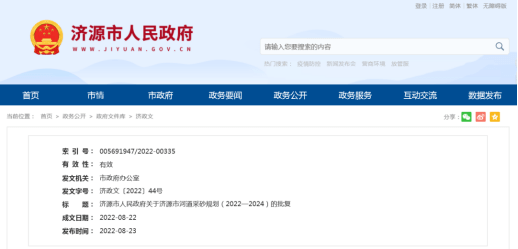近日,濟源市水利局河道采砂規劃方案獲得政府批準,內容如下: