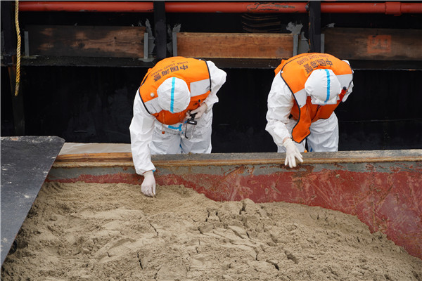 圖說:寶山海警局查獲1起涉嫌非法運(yùn)輸海砂案,查扣海砂1000余噸 吳啟豪 攝當(dāng)日清晨,寶山海警局獲悉,有1艘涉嫌非法運(yùn)砂的貨船進(jìn)入管轄海域,該局立即派遣正在巡邏的執(zhí)法船前往核查。執(zhí)法船接到命令后迅速前往其途徑海域攔截,經(jīng)過核查比對(duì),執(zhí)法艇在1小時(shí)內(nèi)迅速鎖定嫌疑船只。執(zhí)法人員登船后發(fā)現(xiàn),該船貨艙內(nèi)共裝有海砂1000余噸,且無(wú)法提供任何相關(guān)合法手續(xù),涉嫌非法運(yùn)砂。目前,案件正在進(jìn)一步偵辦中。