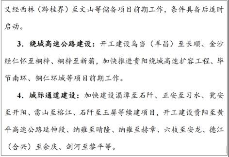 《規劃》表示,提升高速公路網覆蓋范圍和服務水平。實施國家高速公路“補斷暢卡”建設工程,推進貴陽至重慶、貴陽至昆明等國家高速公路繁忙路段擴容改造,提升其通行能力和服務水平。圍繞長江經濟帶和西部陸海新通道建設,進一步完善綜合運輸大通道,強化與周邊省(區、市)銜接,有序推進省際通道建設,加快推進貴陽融入成渝地區雙城經濟圈,形成西南鐵三角,實現與北部灣城市群等重要經濟區的快速連通。圍繞黔中城市群、貴陽都市圈等交通網絡化,推進貴陽、遵義等外環高速公路建設。穩步推進城際高速公路通道建設,強化城際融通,做好項目儲備,適時啟動項目建設。到2025年,高速公路通車里程達到9500公里以上。強化高速公路與沿線城鎮、旅游景區、產業園區、農業壩區、物流園區、港口碼頭等有效銜接,進一步增強高速公路對產業發展、民生保障的支撐。