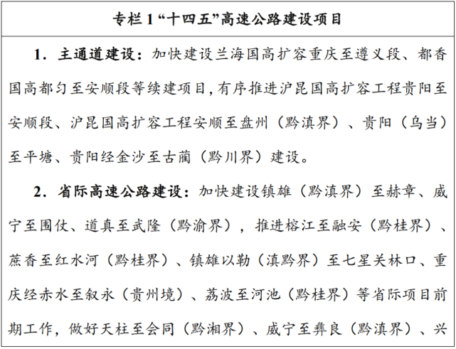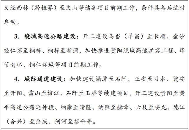 《規劃》表示,提升高速公路網覆蓋范圍和服務水平。實施國家高速公路“補斷暢卡”建設工程,推進貴陽至重慶、貴陽至昆明等國家高速公路繁忙路段擴容改造,提升其通行能力和服務水平。圍繞長江經濟帶和西部陸海新通道建設,進一步完善綜合運輸大通道,強化與周邊省(區、市)銜接,有序推進省際通道建設,加快推進貴陽融入成渝地區雙城經濟圈,形成西南鐵三角,實現與北部灣城市群等重要經濟區的快速連通。圍繞黔中城市群、貴陽都市圈等交通網絡化,推進貴陽、遵義等外環高速公路建設。穩步推進城際高速公路通道建設,強化城際融通,做好項目儲備,適時啟動項目建設。到2025年,高速公路通車里程達到9500公里以上。強化高速公路與沿線城鎮、旅游景區、產業園區、農業壩區、物流園區、港口碼頭等有效銜接,進一步增強高速公路對產業發展、民生保障的支撐。