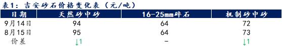 截至9月14日,吉安砂石均價76.7元/噸,天然砂中砂報94元/噸,16-25mm碎石報64元/噸,機制砂中砂報72元/噸。8月吉安砂石受需求端影響價格較堅挺,基本保持不變,9月以來,受新冠影響,砂石料或出現供應吃緊,預計短期內砂石出貨量或有較大的回落,砂石價格或出現小幅抬頭。