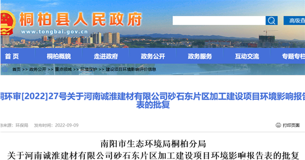 據了解,河南誠淮建材有限公司應依據批復文件,對項目建設過程中產生的廢水、廢氣、固體廢物等污染,以及因施工對生態環境造成的破壞,采取相應的防治措施,最大限度地減輕對環境的影響。