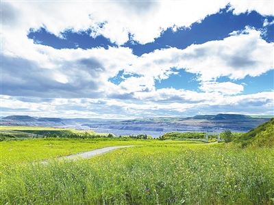 礦瞭望臺遠(yuǎn)眺,除煤礦作業(yè)區(qū)外,盡收眼底的是一片綠色,沙打旺、紫花苜蓿、小葉錦雞兒等植被在雨后顯得更加郁郁蔥蔥。