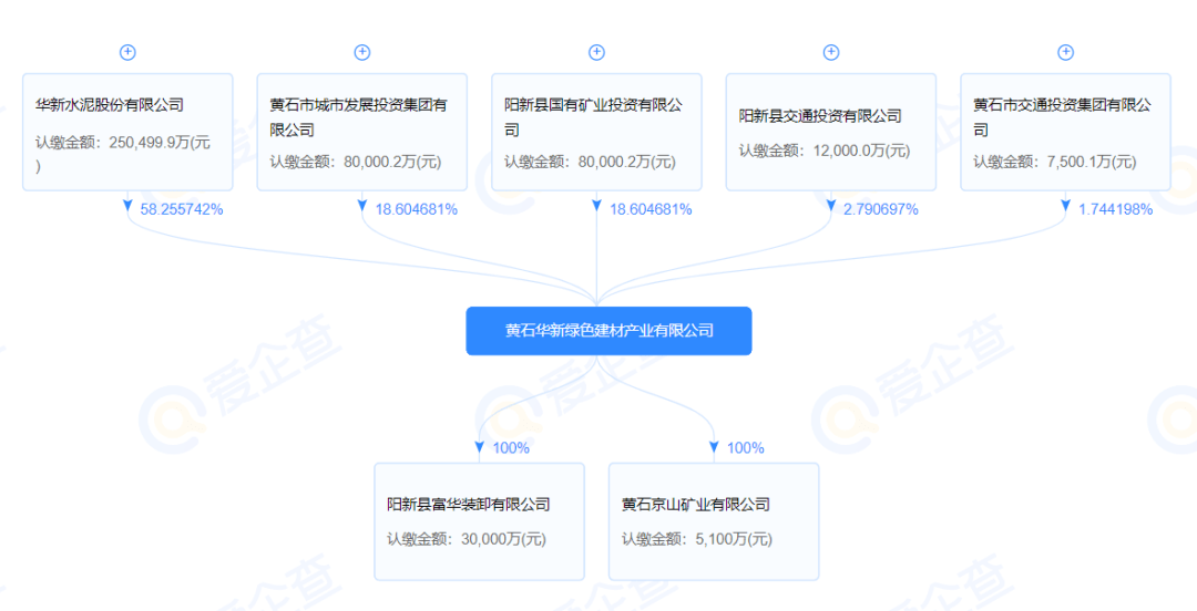 黃石華新綠色建材產業有限公司由華新水泥股份有限公司出資58.255742%持股,黃石市國有企業投資成立的。據了解,華新水泥總投資80億元正在建設中的華新(陽新)億噸機制