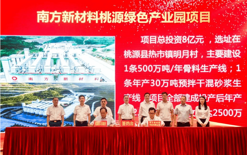 桃源南方新材料綠色產(chǎn)業(yè)園項目將建設(shè)成為“智能化、綠色化、集約化、高端化”發(fā)展綠色建材產(chǎn)業(yè)園,形成500萬噸/年精品骨料、30萬噸/年干混砂漿生產(chǎn)能力。