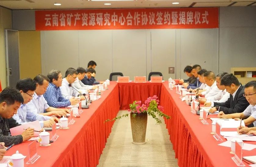 揭牌儀式上,王華與吳喬峰共同為“云南省礦產資源研究中心”揭牌。潘學軍與陳俊簽訂合作協議。