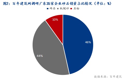 國慶期間據百年建筑網調研廣東砂石生產企業35家,出貨量共119.7萬噸,環比上周上升5.14%。其中碎石銷量55.7萬噸,占總銷量的46%;機制砂銷量52.2萬噸,占總銷量的44%;石粉銷量11.8萬噸,占總銷量的10%。本次調研樣本主要集中在清遠、肇慶、惠州等地,砂石出貨量較國慶前一周雖有提升但幅度不大。