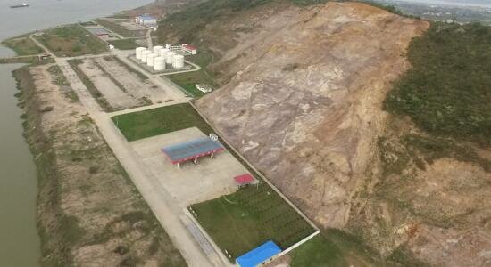 而華億石油2號(hào)山體是沿江受損山體中修復(fù)難度最大、面積最廣的一座“重癥山”,在山體的生態(tài)修復(fù)過(guò)程中,根據(jù)山體地質(zhì)情況及當(dāng)?shù)貧夂蛱攸c(diǎn),采用了四季常青的復(fù)綠方案,因其坡度陡且?guī)r面光滑,新增覆土極易被雨水沖走,恢復(fù)植被難度增大,因此施工單位摒棄常規(guī)植樹(shù)種草技術(shù),采用先進(jìn)的高次團(tuán)粒噴薄技術(shù)進(jìn)行復(fù)綠。