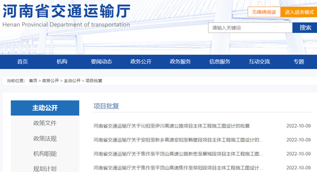 10月9日,河南省交通運(yùn)輸廳批復(fù)了焦作至平頂山高速焦作至滎陽段項(xiàng)目、焦作至平頂山高速公路新密至襄城段項(xiàng)目、安陽至新鄉(xiāng)高速安陽至鶴壁段項(xiàng)目、沁陽至伊川高速公路項(xiàng)目4條高速公路主體工程施工圖設(shè)計(jì),總投資約445.59億元。