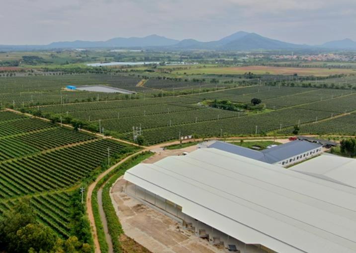 目前,尚嶺農(nóng)業(yè)自建的生物工廠所有的有機肥料來自于禽畜糞污及秸稈等生物廢棄物,通過添加混合菌種,可以在48小時內發(fā)酵成全有機、全水溶、無臭味、不會造成二次污染的有機肥,通過水肥一體化系統(tǒng)直接進行滴灌,每年可吸納3.5萬噸豬糞,用于生物有機肥的制作,并直接用于火龍果等農(nóng)產(chǎn)品種植。